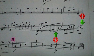 元トップの方がレッスンで指導されたボーイングははみ出し八分音符を手前のスラーに組み入れろと。